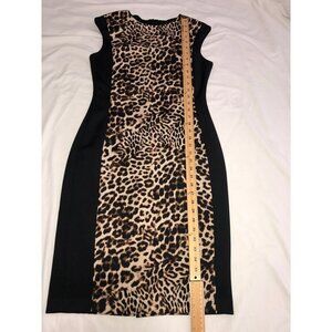 Vince Camuto Womens Size 6 Dress Leopard Animal Print Sheath Cap Sleeve Stretch