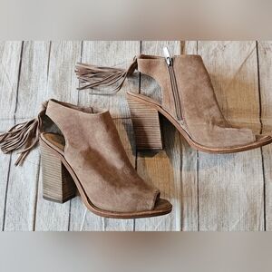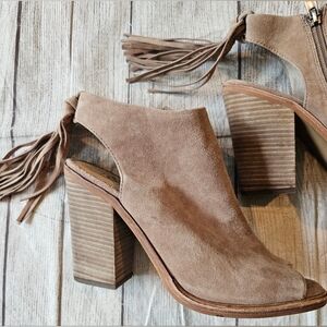 Vince Camuto Women's Size 8 Kyleena Open Toe Block Heel Fringe Festival Shoe
