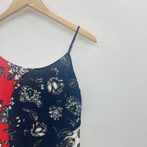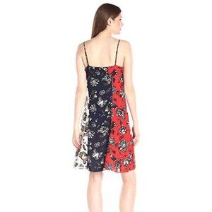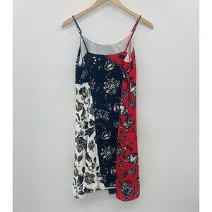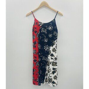 Vince Camuto Womens Size XS Wood Block Floral Colorblock Flare Dress Red Blue
