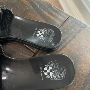 Great condition womens size 7 Vince Camuto criss cross strap slides, features silver accents on the straps