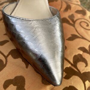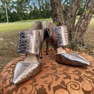 Vince Camuto Women’s Snake-Embossed Pewter Colored Leather Heels, Size 6.5 EUC