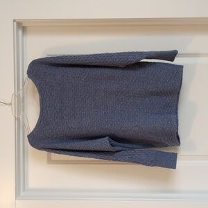 This is a Vince Camuto pullover in a size Large. It is a light blue knit pattern with long sleeves. It is in good condition.