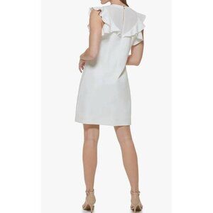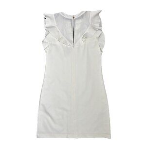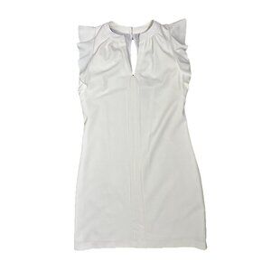 Vince Camuto Women's Sz 4 Sleeveless V Neck Laguna Shift Dress Ivory Ruffle LWD