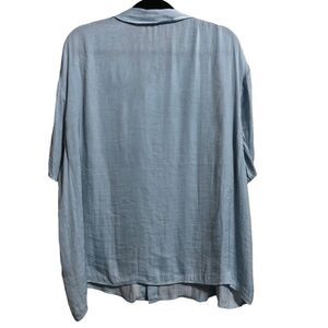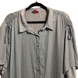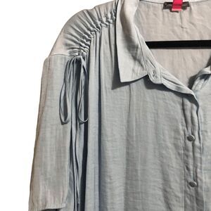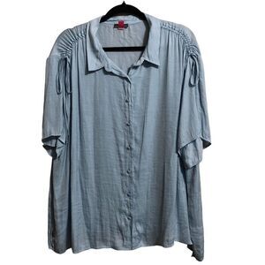 Vince Camuto Womens Top Blue 3X Plus Ruched Sleeve Button Up Blouse Lightweight