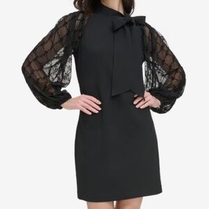 Vince Camuto Women's US 4 Stretch Crepe Bow Neck Shift Dress Black NWT
