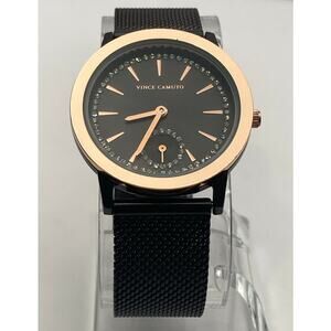 This Vince Camuto women's watch is a stylish and functional timepiece. It features a beautiful rose gold and black tones that complements any outfit.