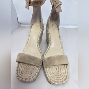 Vince Camuto Womens Wedge Espadrilles Sz 11M Tan Suede Adj. Ankle Straps