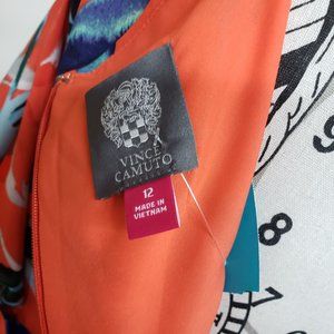 Vince Camuto Women's size 12 Orange Floral knee length lined dress - Gently Used