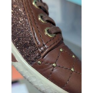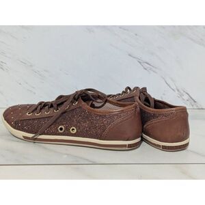 Vince Camuto Women's Brown & Gold Studded Leather Glitter Sneaker Size 7