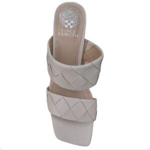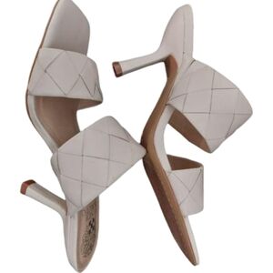 Vince Camuto Woven Leather Heeled Mules | White Wedding Special Occasion Sandals 7.5