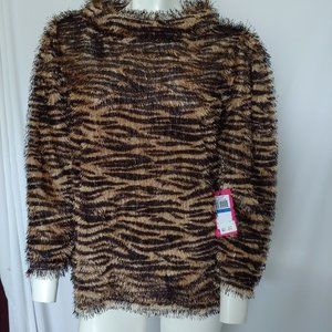 Vince Camuto Leopard print top. Fringy, shaggy with boatneck high collar. XL. New with tags. 3/4 sleeve. 100% Polyester.
