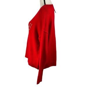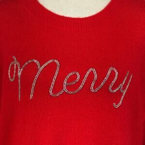 Vince Camuto X-Small Holiday Sweater Merry Silver Beaded Crew Neck Christmas Red