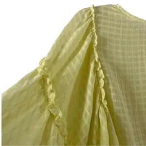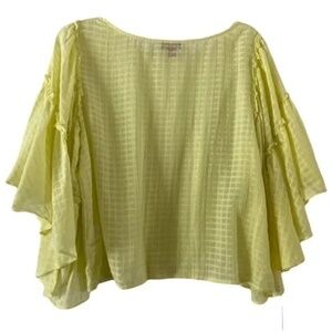 Vince Camuto | Yellow Windowpane Tiered Flutter Sleeve Copped Cotton Top, Medium