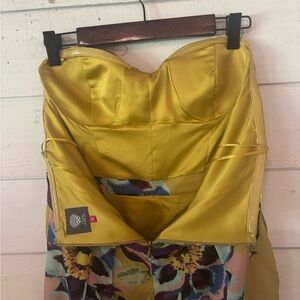 Vince Camuto floral dress with strapless design. Features bold yellow and purple hues. Great condition in size 10