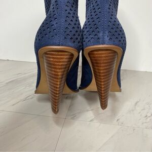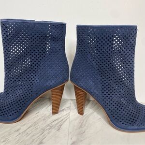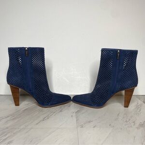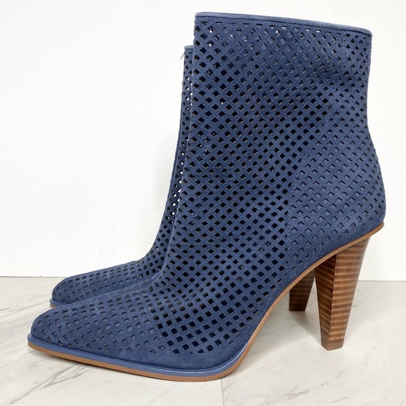 Vince Camuto Yolandal Blue Cutout Suede Pointy Toe Heeled Booties 9M