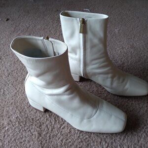 Worn 4 hours at my wedding in June. Size 8.5. Leather upper.