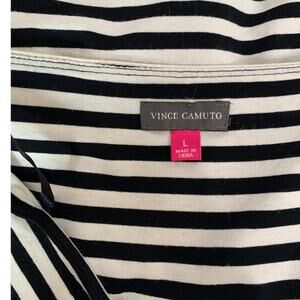 Vince Camuto black white striped long sleeve cross front wrap style top Large