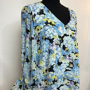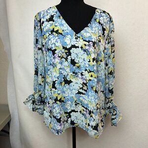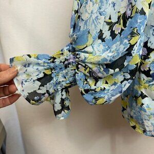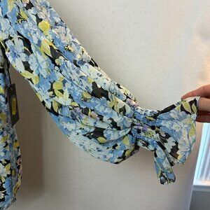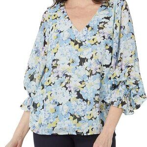 Vince Camuto blouse top women M blue floral balloon sleeves chiffon lined NWT