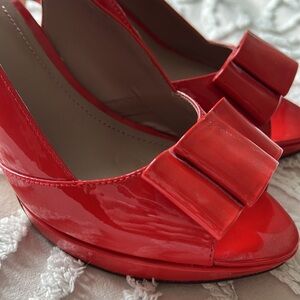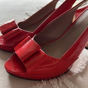 Vince Camuto - bright coral patent leather heels