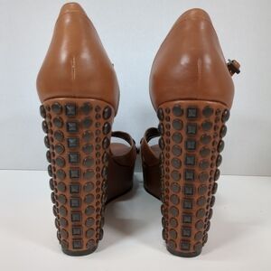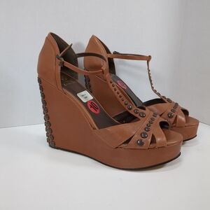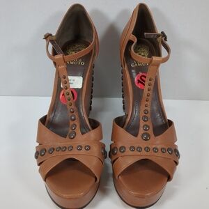 Vince Camuto brown studded wedge sandals, size 10 , a few marks/ stain, one stud missing see pics pre-owned Good Condition
