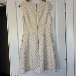 Vince Camuto cream gold metallic fit flare dress. Knee length. Size 6. Holiday