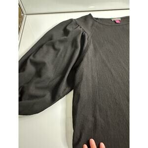 Vince Camuto cute doll puff shoulder black blouse top crew neck 3/4 sleeve