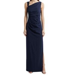 Vince Camuto draped asymmetric sleeveless gown dress blue size 12 F2370