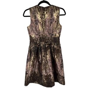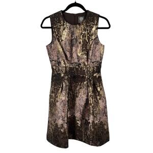 Vince Camuto dress metallic pleated minidress brown size 2 E3585
