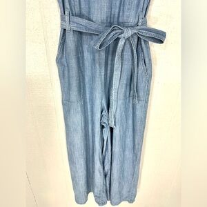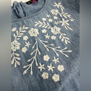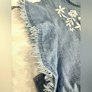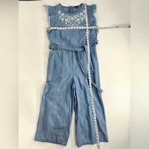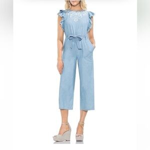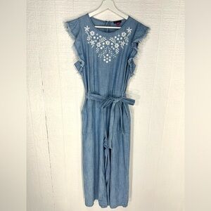 Vince Camuto embroidered denim jumpsuit flutter sleeve size M
