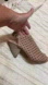 These fun sandals are just gorgeous. I’m quite in love with them, but they’re really just too high for me. A tan leather is woven. There is a sling back. A beautiful triangular wooden heel They’ve been tried on many times, but never worn for longer than an hour an excellent condition.