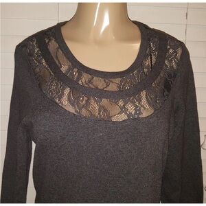 Vince Camuto fit and flare lace detail gray dress size Large cocktail party