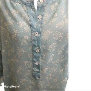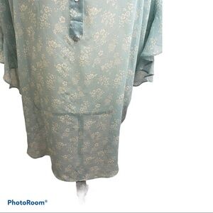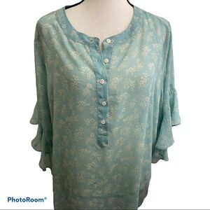 Vince Camuto flutter sleeve floral print light blue white half button 1X plus size