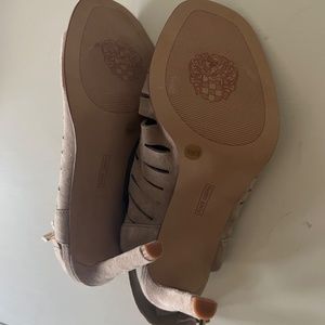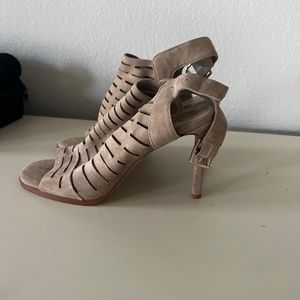 Brand new and never worn. Tan suede sandals with 3 3/4” heel height. 7 1/2 shoe size. Original shoe box not included.