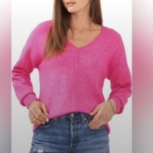 Vince Camuto hot pink V neck sweater size Small + bonus matching LuLaRoe skirt