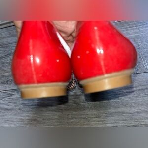 Vintage Vince Camuto leather red white ballet flats. Size 7B. Made in Brazil. Pre loved and has some signs of light wear. There are some wrinkles on back of heel area. Please review pics carefully as they serve as part of the description.