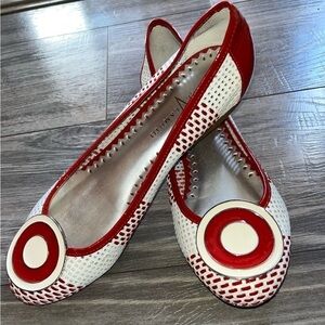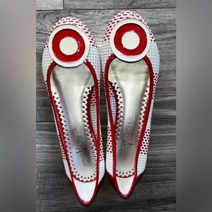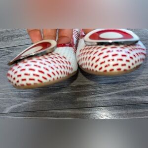 Vince Camuto leather red white ballet pin up retro flats. made in Brazil Size 7B