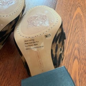 Beautiful brand new shoes featuring a 4 inch block heel leather sole and gold chain detail.
