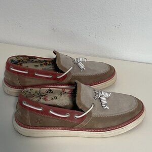Vince Camuto mens boat shoe/loafers size 10.5 barely worn, still not even broken in. In excellent condition, a casual shoe with great style. Brown/taupe suede and leather with rubber soles.