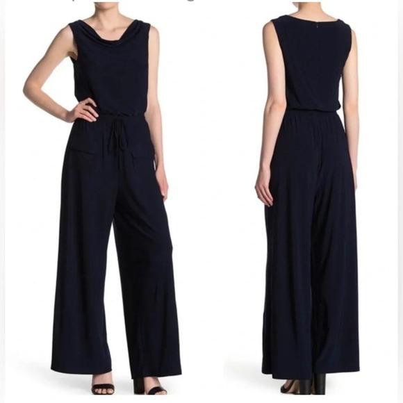 Vince Camuto navy cowl neck drawstring jumpsuit, Size Large
