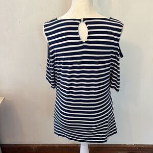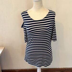 Vince Camuto navy white striped cold shoulder top Size M