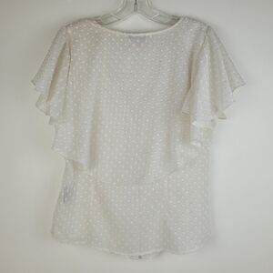 Vince Camuto off white boho ruffle blouse flowy cap sleeves fairy tufted dots 6
