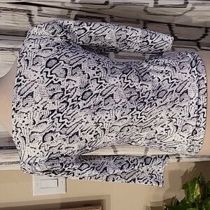 Vince Camuto print top. Slight puff shoulder and 3/4 length sleeves. Fabric consist of 95% polyester and 5% spandex.