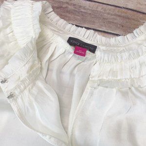 Vince Camuto ruffle keyhole neck bell sleeve satin blouse Ivory size XS