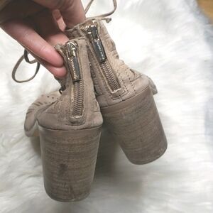 Vince Camuto taupe ‘tarita’ lace up cutout sandals size 8.