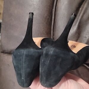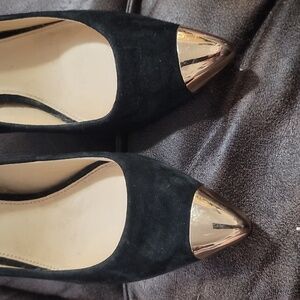 Vince Camuto vc signature Black suede Gold toe Stiletto Heels pumps 6.5