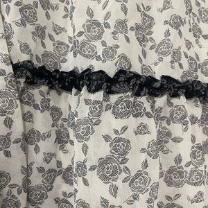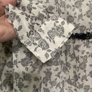 cute preppy feminine cut and style with a neutral black/white floral pattern and ruffle horizontal details