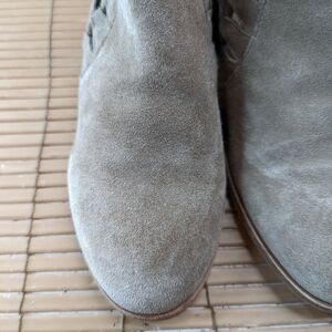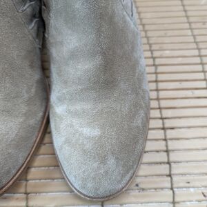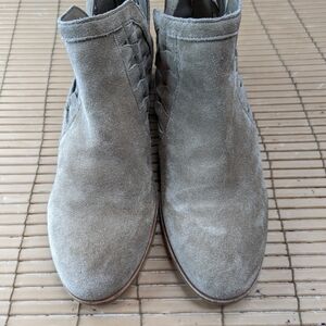 Vince Camuto women's sz 7.5M 2" heel back zip ankle boots. Putty/beige suede. Side cut outs. Great condition.