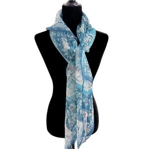 Elevate your accessory collection with this Vince Camuto scarf, featuring a stunning marbled pattern in shades of blue. Crafted from a delicate silk-like fabric, it offers a lightweight and flowing design that adds a touch of elegance to any ensemble. The ethereal watercolor effect and ocean-inspired hues make it a standout piece for any occasion.