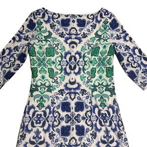 Vince Camuto Blue and Green Patterned Dress Size 6