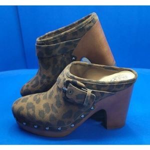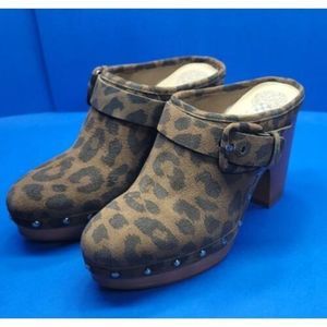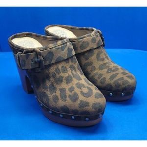 Vince Camuto Ceena Brown Black Rugged Studded Leo Platform Clogs 7M.